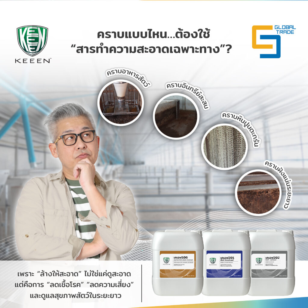 ในฟาร์มสุกร คราบแต่ละประเภทไม่เหมือนกัน การใช้สารล้างแบบเดียวกับทุกคราบ อาจล้างไม่ออก แถมสิ้นเปลืองแรงและเวลาโดยไม่จำเป็น มาดูกันว่า คราบแบบไหน ควรใช้สารแบบใด 1. คราบไขมัน คราบอาหารสัตว์ มักเกาะแน่นตามถาดอาหาร พื้นคอก และราง ควรใช้ สารทำความสะอาดที่ออกแบบมาสำหรับสลายไขมันโดยเฉพาะ ช่วยให้คราบหลุดง่าย ไม่ต้องขัดแรง 2. คราบมูล คราบอินทรีย์สะสม เป็นแหล่งสะสมเชื้อโรคโดยตรง ต้องใช้ น้ำยาที่เจาะคราบอินทรีย์ได้ดี เพื่อเปิดผิวพื้นก่อนขั้นตอนฆ่าเชื้อ 3. คราบตะกรัน / คราบหินปูน พบได้บ่อยในระบบน้ำ หัวพ่น หรือผนังที่มีความชื้นสูง ควรใช้ น้ำยาที่ปรับสมดุลค่า pH ช่วยสลายตะกรัน ลดการอุดตัน และยืดอายุอุปกรณ์ 4. คราบฝังแน่นสะสมระยะยาว คราบเก่าที่ล้างไม่ออกมานาน จำเป็นต้องใช้ สารทำความสะอาดเฉพาะทางที่มีประสิทธิภาพสูง ช่วยลดเวลา ลดแรง และทำความสะอาดได้ถึงต้นตอ ________________________________________ เพราะ “ล้างให้สะอาด” ไม่ใช่แค่ดูสะอาด แต่คือการ ลดเชื้อโรค ลดความเสี่ยง และดูแลสุขภาพสัตว์ในระยะยาว CCGT […]